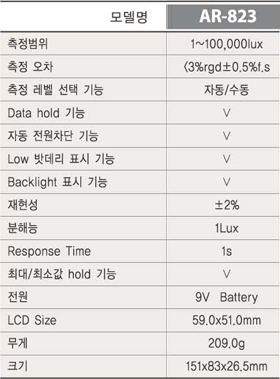 - °¡º±°í »ç¿ëÀÌ ¿ëÀÌÇÏ´Ù. - 1 ~ 100,000 LUX - LCD»ª¶óÀÌÆ®±â´É.