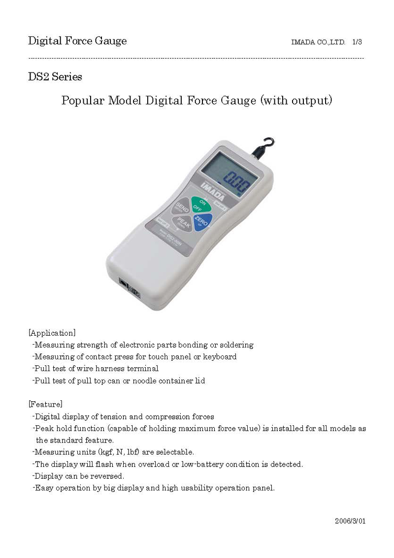 ÇÏÁßÄ¡ £º2N (200 gf)~1000N (100 kgf)±îÁö °¢Á¾ Ç¥½Ã £ººÎÈ£ 4ÀÚ¸®¼öLCD °èÃø ´ÜÀ§ £ºN (´ºÅÏ),Kgf °èÃø ½Ã°£ £º1000ȸ ÀÌ»ó/ÃÊ Çã¿ë ºÎÇÏ £ºÁ¤°Ý 200%(105%Á¡¸ê °æ°í) »ç¿ë ¿Âµµ £º0~40¡É Àü¿ø £º´ÏÄ«µå ÀüÁö ³»Àå,AC ¾î´ðÅÍ Ãâ·Â ±â´É £ºµðÁöÅÐ(½Ã¸®¾ó£ºRS232C) º»Ã¼ Áß·® £º¾à 420