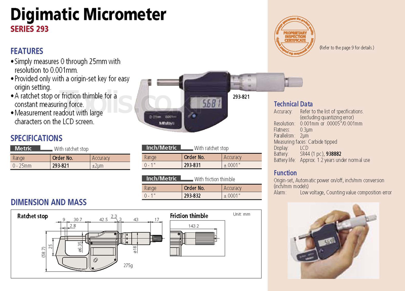 293-821(0-25mm(0.001)